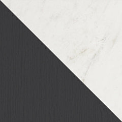 | Details | Made with engineered wood (MDF/particleboard/plywood) and decorative laminate for the right balance of affordability and durability, Matte black finish with subtle replicated wood grain, Replicated white marble top, Decorative laminate replicates natural or man-made material surfaces with consistent color, pattern and texture, Handles with light bronze-tone finish, Open shelf, 2 smooth-gliding drawers, Drawer interiors are lined with a faux linen laminate for a clean, finished look, Ambient lighting under the top, Power cord included; UL Listed, Minor assembly required | |