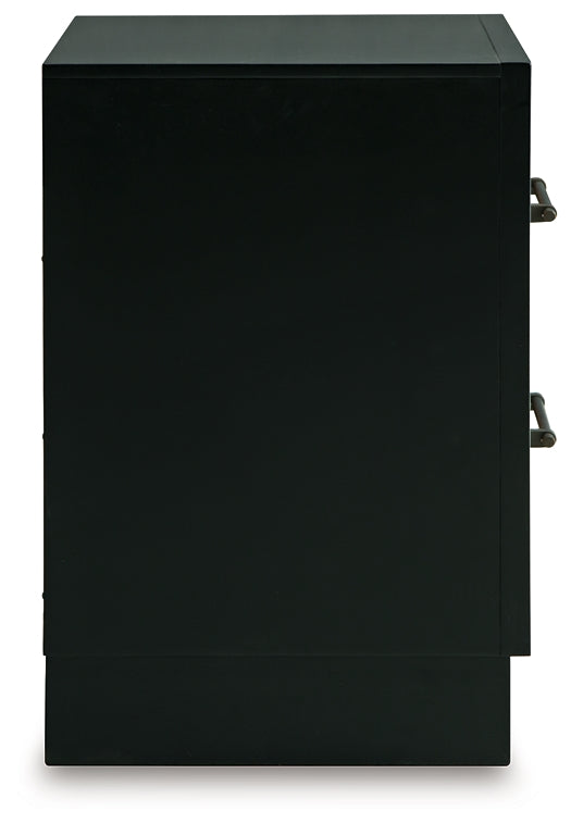 Experience the captivating allure of this nightstand, an effortless blend of casual and refined aesthetics. Its two-tone finish combines satin black with a rich brown wood tone for a modern, relaxed vibe that you'll love waking up to. Perfectly suited for your contemporary home, this nightstand has plenty of drawer space to tuck away your bedside essentials.